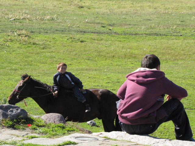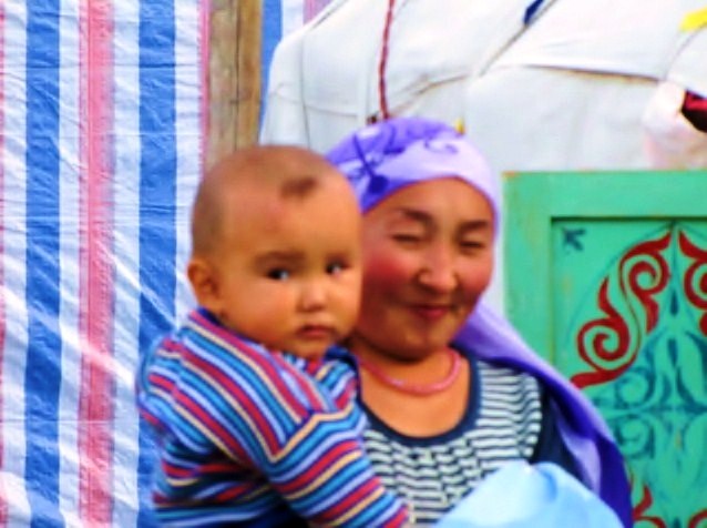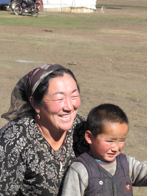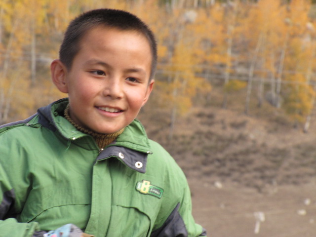 04 白哈巴 休息站內 親切的母子..小男孩不畏強光仍擺出Ya 給我們按快門 (偷說:我以為是嬤孫)