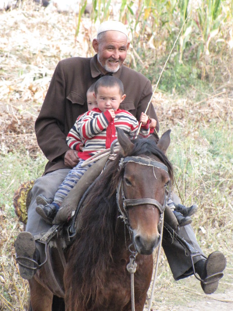 05 往九曲十八灣路上 收割農家祖孫三人一馬 阿公可是主動跑來呼叫相機喔