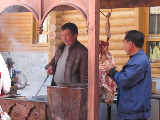 03 喀那斯餐廳外的小販 生意好的笑不攏嘴 (掛羊腿)